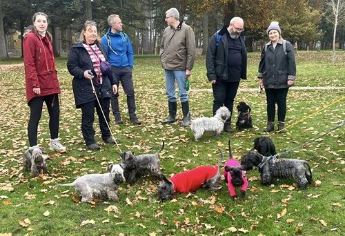 When you are a rare breed like the Cesky Terrier you don't often see other dogs that look just like you and it can be a bit lonely when you are surrounded by lots of oodles and doodles, Pugs and Dachshunds, Jack Russells and spaniels, so we went for a walk! Well, not just an ordinary walk, but a special Cesky walk. It was organised by our friend Jen and nine Cesky Terriers and their people met up on Cannock Chase for lots of talking, coffee for the humans and treats for us dogs - oh, and plenty of running around and playing too. Gloria took Trixie along for her first real experience of a huge outdoor space, and she had a ball!