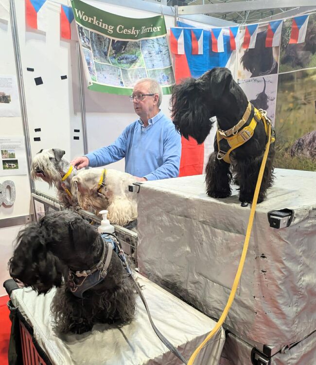 Cesky Terriers were there on each of the four days of Crufts. Gloria and Trixie went on Sunday to do their stint on Discover Dogs. Trixie's sister came too, whilst Jen's Gracie, Reni and Arsha and our friends from Jersey spent time on the stand as well. It was good that we had so many volunteers as we were so busy. It was nonstop talking and being admired, and when we got home we were really tired - but what fun we had.