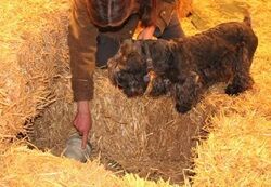 The Cesky Terrier has always been a dog that is expected to fulfil three separate functions: a family pet, with a good temperament and sociable nature, a glamourous show dog, and - most importantly - a working dog, able to follow a scent through the woods. Cesky Terriers love to use their noses and, although we don't hunt wild boar in the UK, several are proving useful as deer trackers.